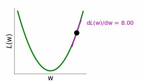 \vec{v}_t &= \alpha \, d L(\vec{w}_t) / d \vec{w}_t \\