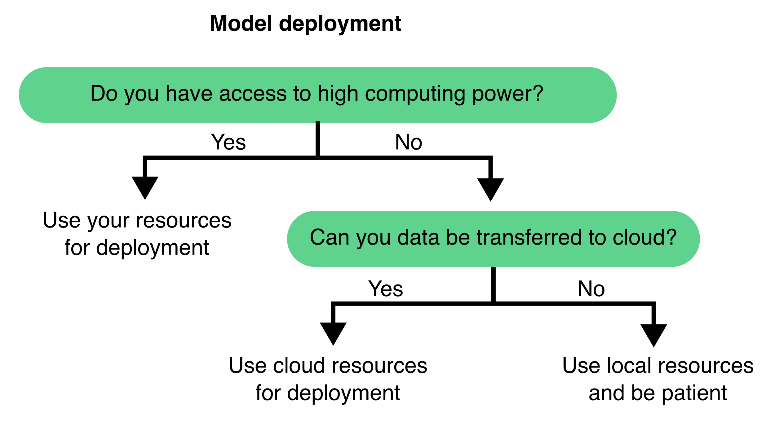 Additionally, consider whether to train and deploy your model locally or in the cloud (Figure 9.11). Local training is often more feasible if you already have access to a compatible workstation and want full control over data and execution. However, cloud-based services like Google Colab or AWS offer access to more powerful hardware, removing the need for local infrastructure—this is especially beneficial when working with large models or 3D datasets.