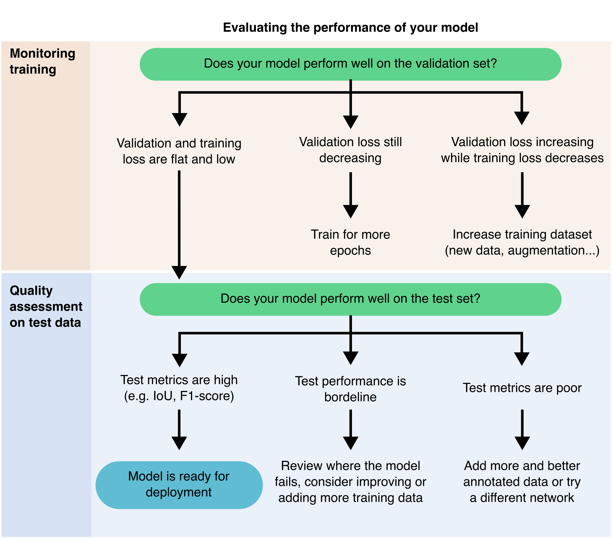 If performance is poor, you may need additional annotated data to help the model generalise more effectively (Figure 9.8). Consider the following questions: